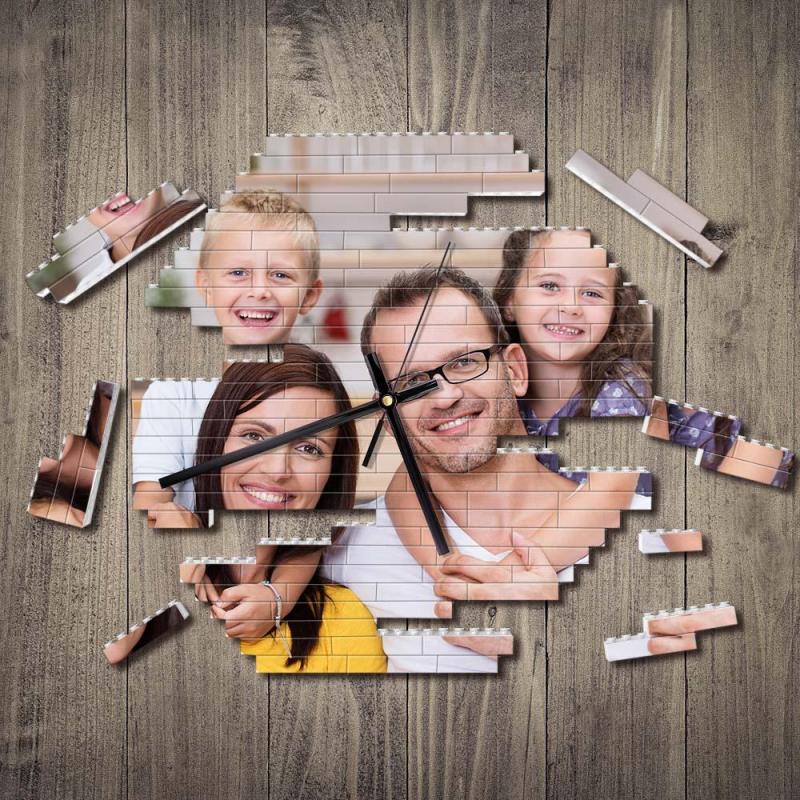 Benutzerdefinierte Bausteine wanduhr Personalisiertes Puzzle Benutzerdefinierte Foto-ziegeluhr-geschenk Für Die Familie