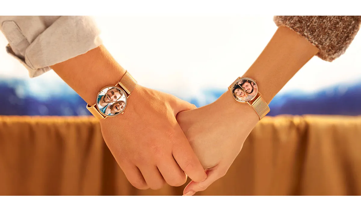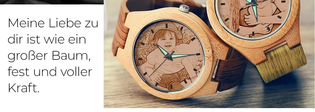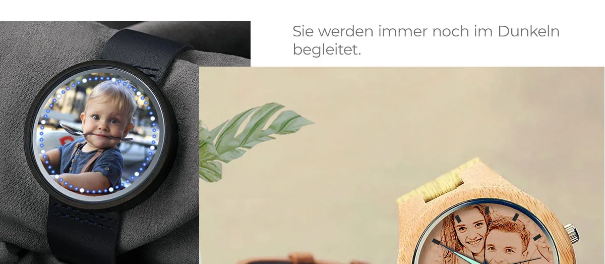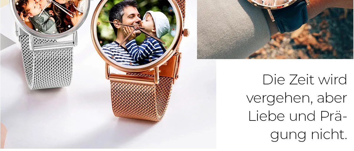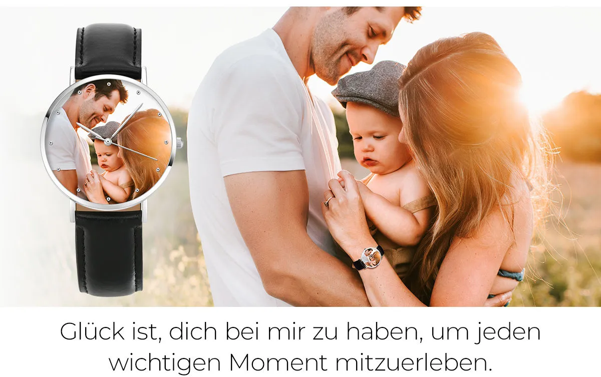 Gravierte Herren Black Alloy Armband Foto Watch 38mm