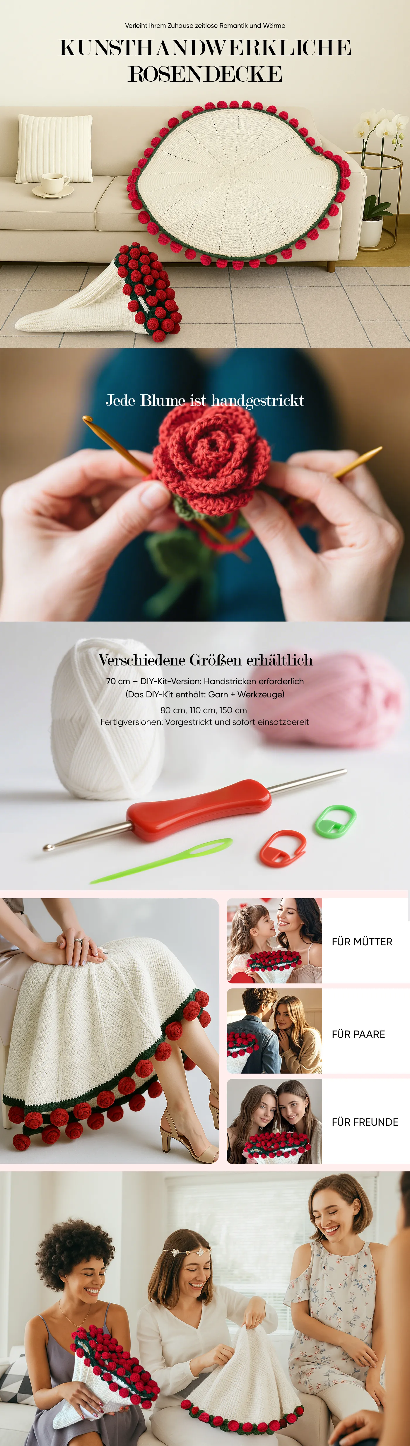 80 cm, 110 cm, 150 cm – Fertigversionen: Vorgestrickt und sofort einsatzbereit.