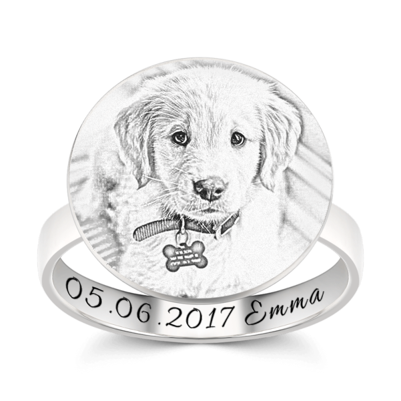Runden Foto Gravierte Ring mit Gravur Platin ¨¹berzogenes Silber
