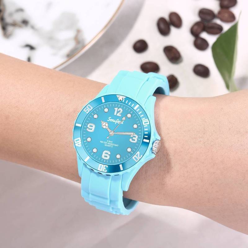 Soufeel Damen Hellblau Silikon Uhr 39mm
