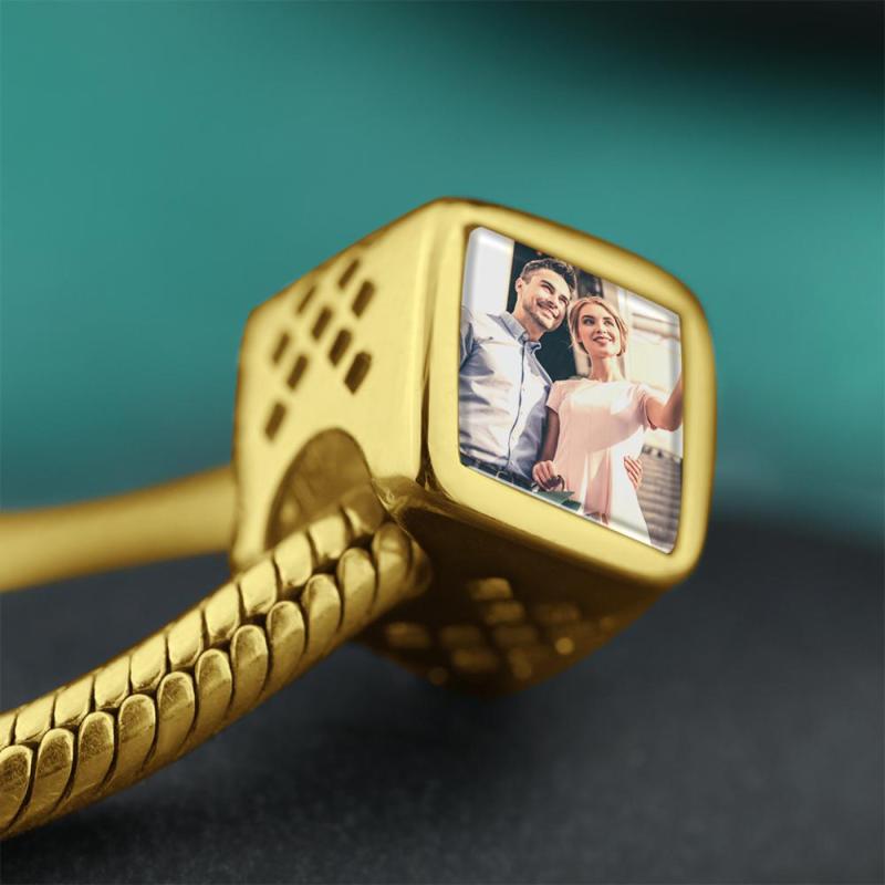 Quadratische Foto Charm Klassisch Stil 14K Gold Plattiert