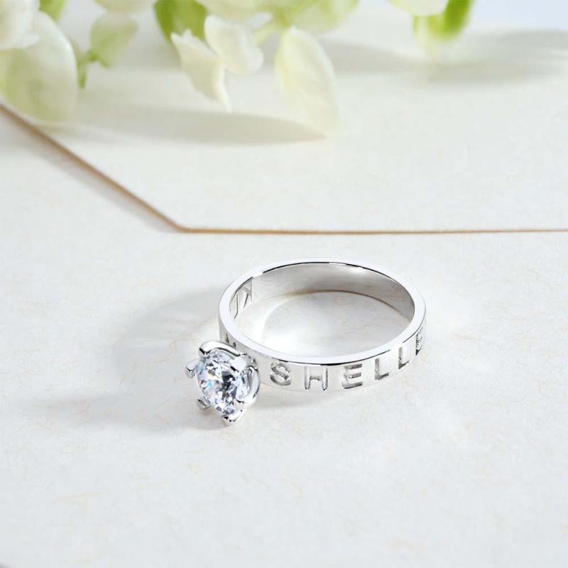 Erstellen Sie mit diesem individuell gestalteten Ring ein wunderschönes und bedeutungsvolles Andenken. Wählen Sie Ihren eigenen Stein und gravieren Sie bis zu zwei Liebesbekundungen auf dem Schaft für ein wirklich personalisiertes Schmuckstück.