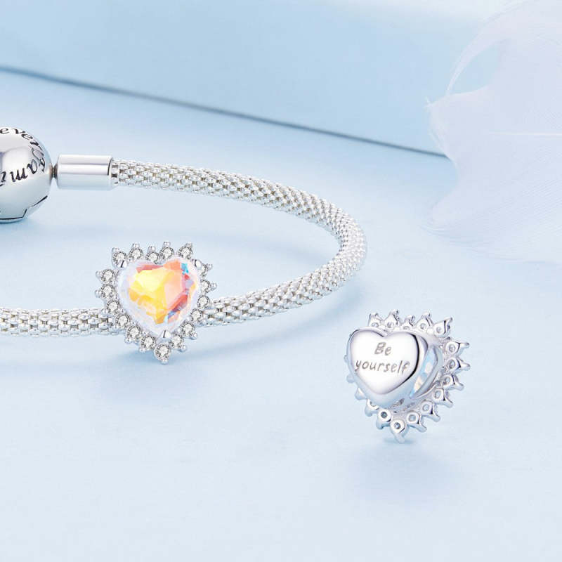 Charm-Anhänger „Sinfonie der Liebe“ aus weißem Zirkon, Silber