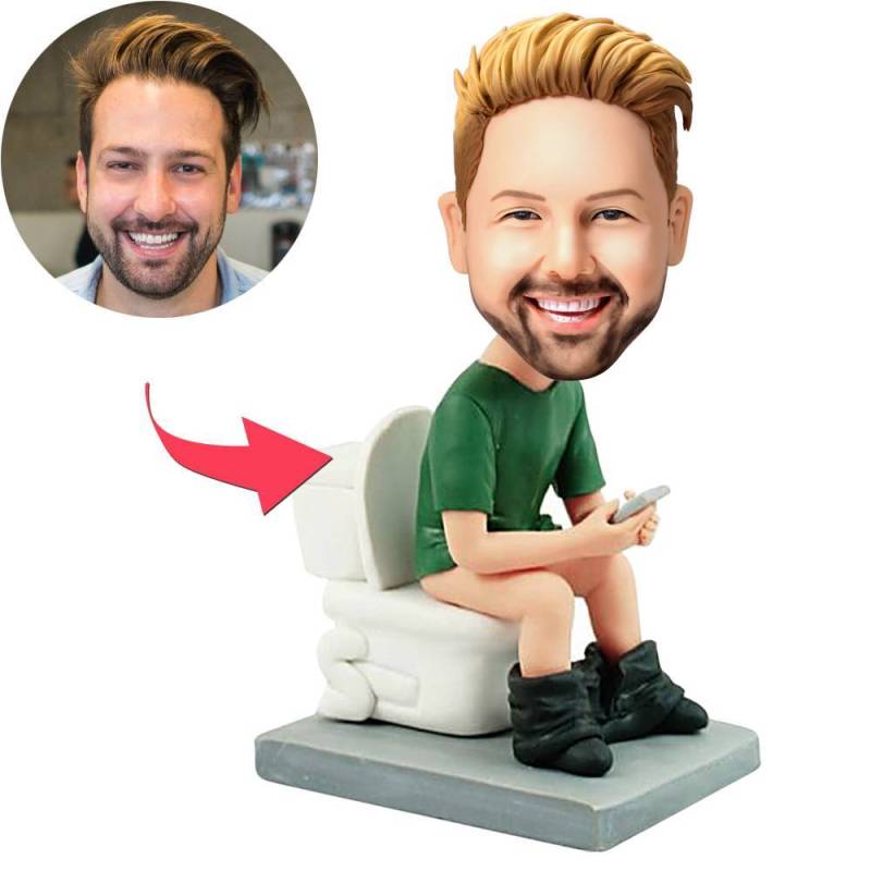 Personalisierter Wackelkopf „der Mann Auf Der Toilette“ Mit Eingraviertem Text